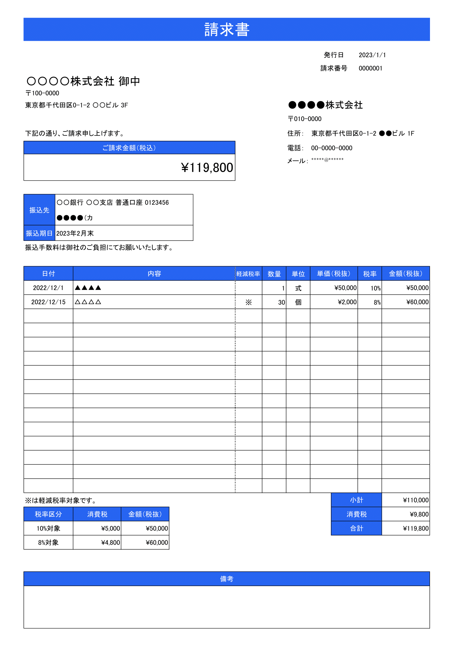 テンプレートには、金額や税率などの計算式があらかじめ設定されています。これにより、計算ミスのリスクを減らすことができ、正確な請求書を作成できます。