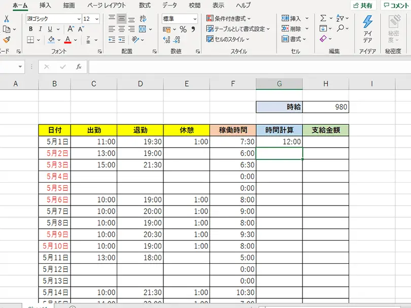 Excelでの時間入力:時給計算や勤務時間管理に便利!