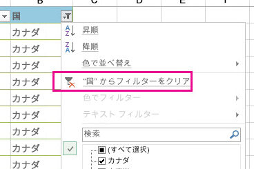 | フィルター適用列からフィルターを削除 | フィルター列のヘッダーを右クリックし、「フィルターを削除」を選択 |