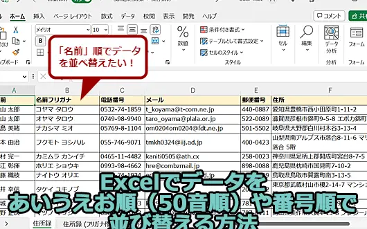 Excelで五十音順に並び替えるにはどのようにすればよいですか?