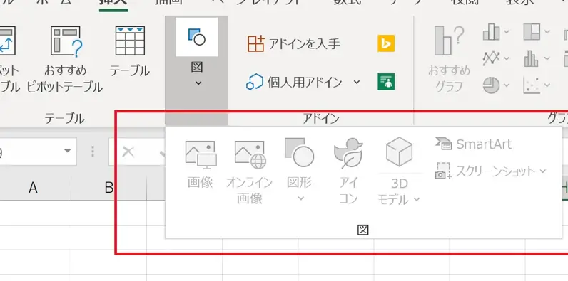 Excelの図形挿入機能がグレーアウトしている時はどうすればよいですか?