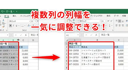 Excelで列幅を統一する方法
