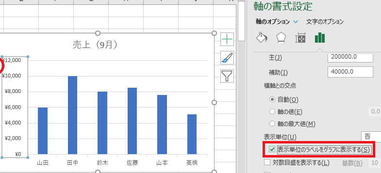 Excelグラフの軸に単位を表示する方法は?