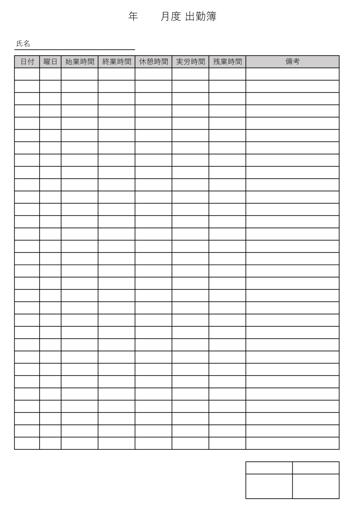 1.シンプルなデザインの出勤簿