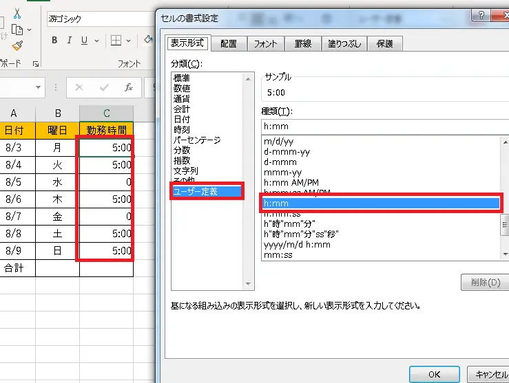 エクセルでは、時間の表示形式をカスタマイズすることもできます。