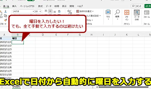 Excelで曜日を自動入力するにはどうすればよいですか?
