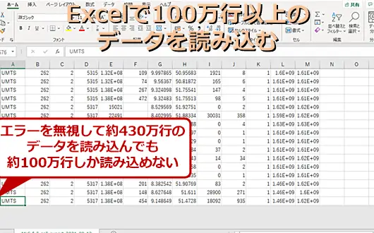 Excelの最大行数や最大列数を超えたデータを扱う方法はありますか?