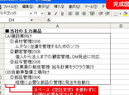 セル内のすべてのテキストをインデントする方法は以下の通りです。