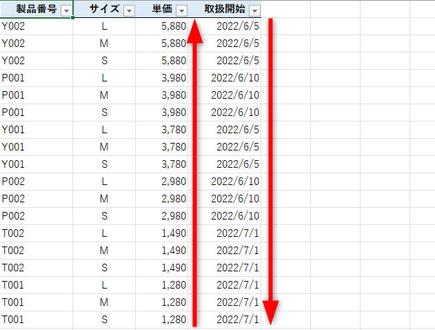 | カスタム並べ替え | 複数の列や条件を指定して並び替えます |