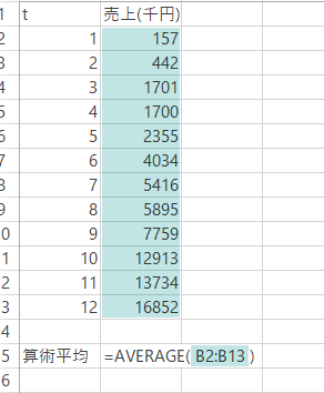 MEAN関数の使い方の例