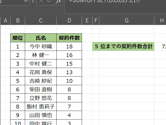 オフセット関数を使ったデータの集計