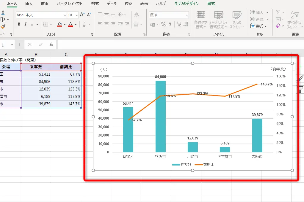 - 添付したいグラフをクリックして選択します。
