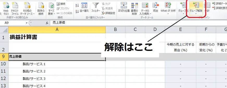 Excelでグループ化を解除する方法