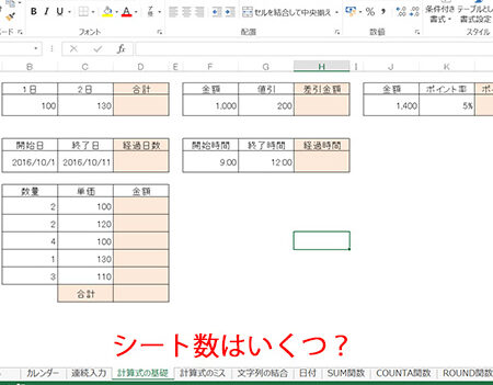 数式を利用してシートの数をカウントする方法もあります。この方法では、`SHEETS`関数を使用します。 1. ワークブック内の任意のセルに以下の数式を入力します。 =SHEETS() 2. エンターを押すと、ワークブック内のシートの数が表示されます。 この方法では、VBAを使用せずにシートの数をカウントできます。