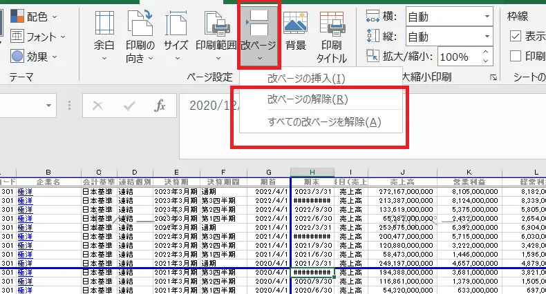 手動ページブレークを挿入してページを削除する