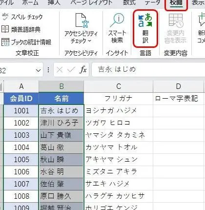 Excelの「PHONETIC」関数を使用してローマ字に変換する場合は、変換結果は半角で表示されます。全角で表示させることはできませんので、注意が必要です。