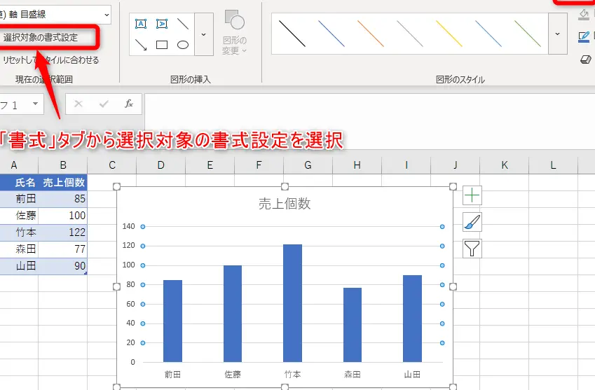 | データ範囲を指定 | グラフに反映させるデータの範囲を選択します。 |