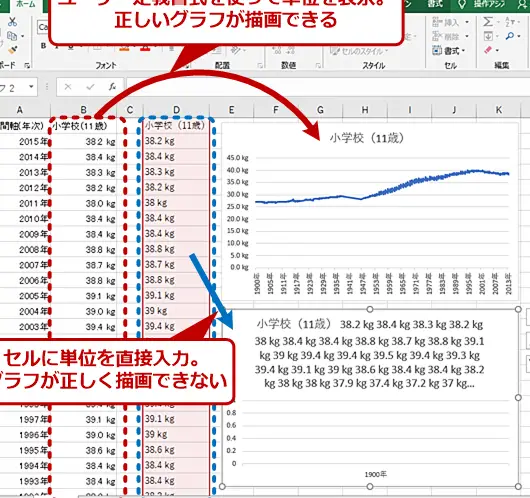 Excel で単位を自動で付ける方法