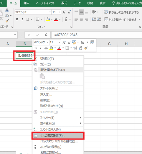 - セルを右クリックし、書式セルを選択します。