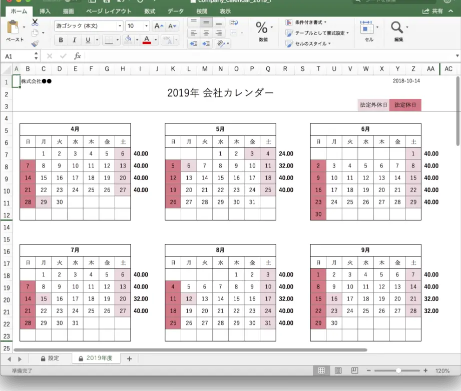 休日や重要な日程の設定