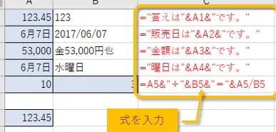&演算子は、複数の文字列を連結するために使用します。TEXT関数で変換した文字列を他の文字列と組み合わせる際に便利です。