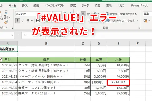 - VALUE! – 計算に使用できない値が含まれている場合に発生するエラーです。
