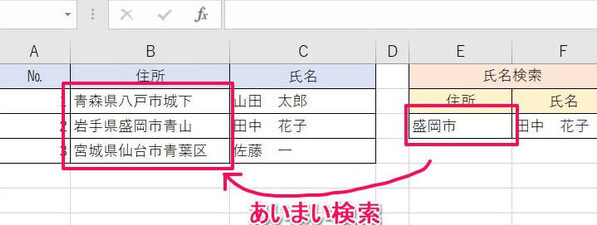 Excelでの部分一致検索:文字列の一部が一致するセルの見つけ方