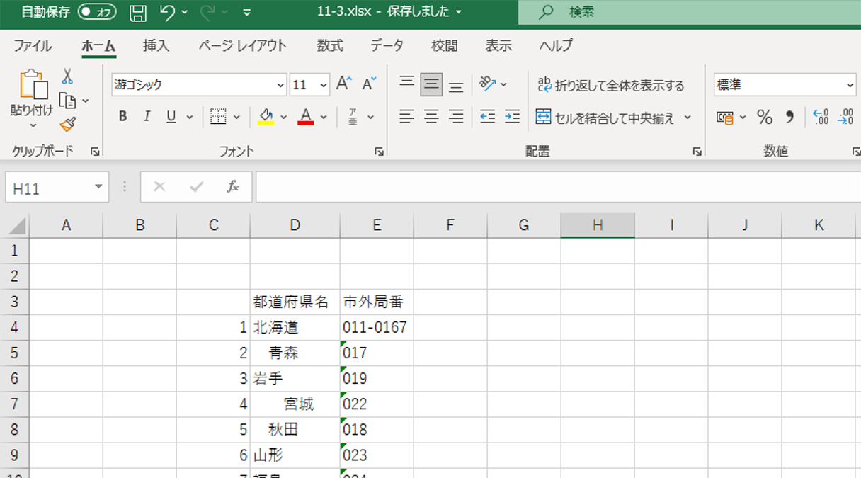 - セルを選択します。